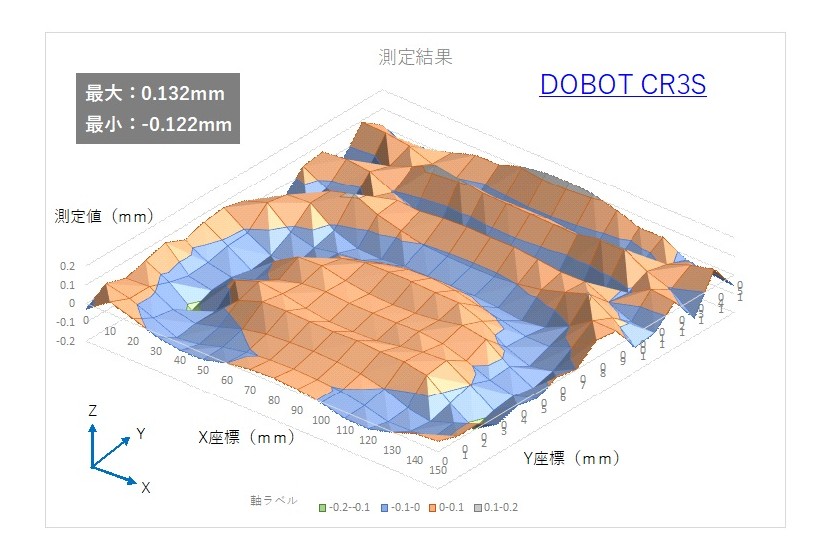 DOBOTは減速機の剛性(荷重がかかったときの変形量がギヤの位相により異なる)要因での誤差が大きく、後継機種CRAシリーズでは改善されている模様である。